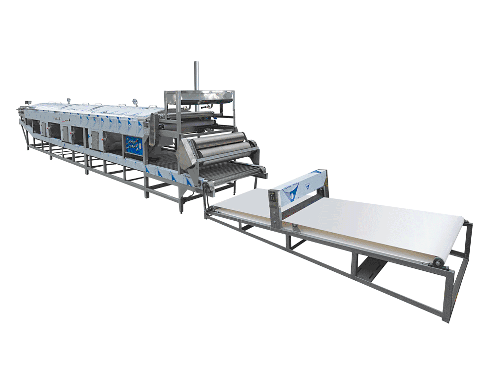 2、采用直熱式加溫,升溫快、油耗低,比以往河粉加工設(shè)備節(jié)能40%以上。
